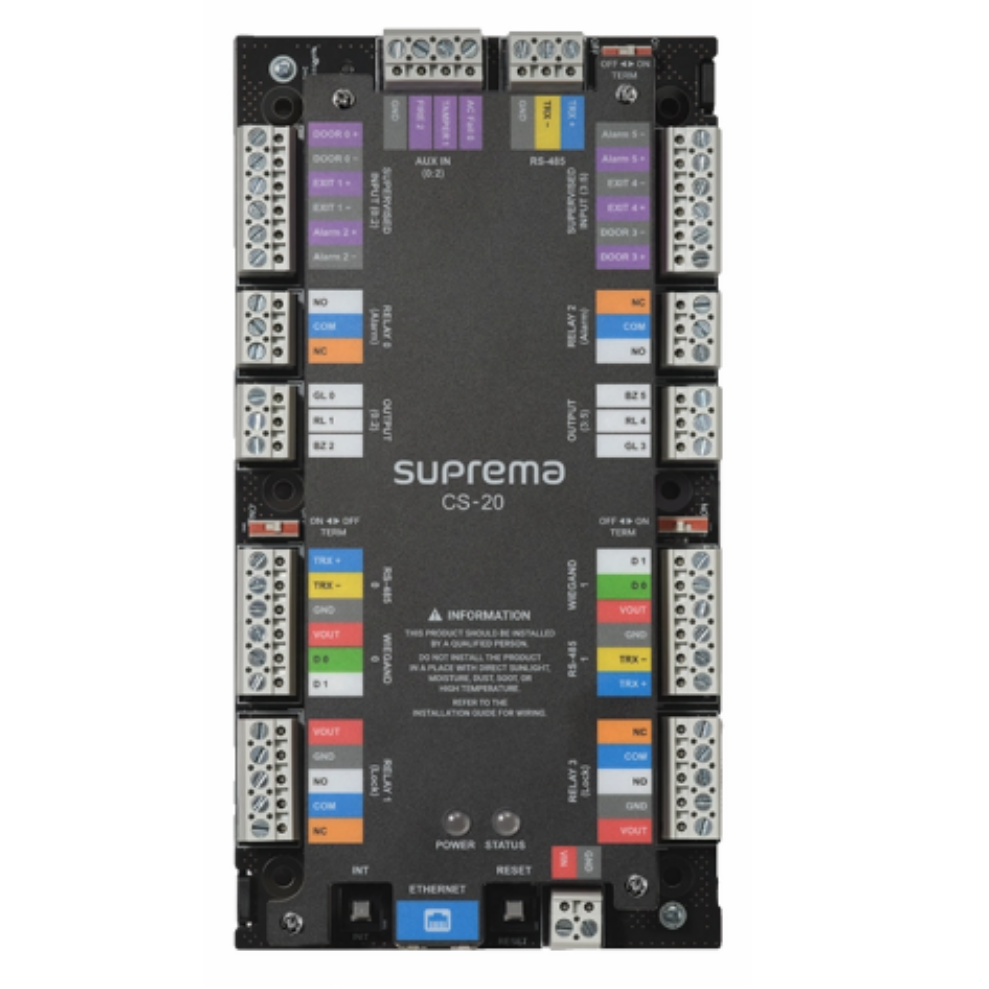 Suprema intelligent controllers form the core of an integrated access control platform, supporting centralized management, scalability, and reliable system operation across enterprise environments.