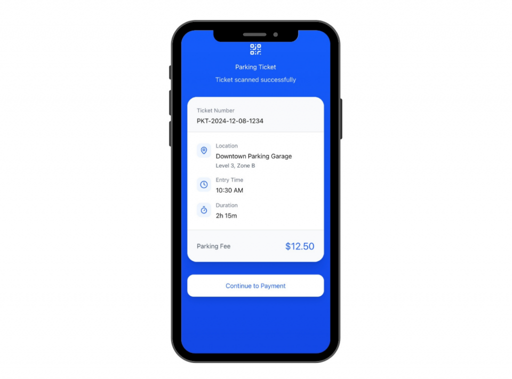 Pay parking fees via mobile or kiosk, reducing queues and staff workload