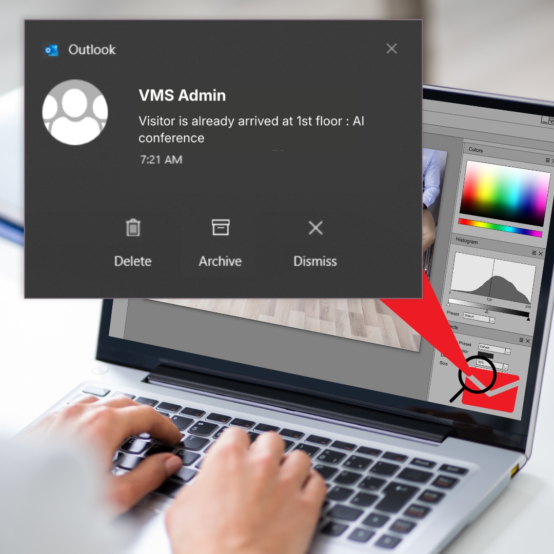 The system notifies hosts automatically on visitor check-in, ensuring timely receptions and faster meetings.